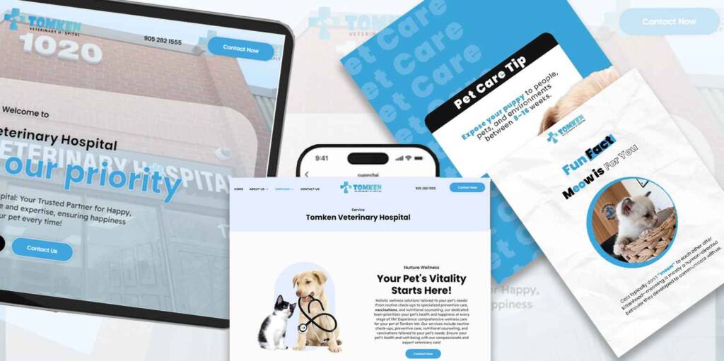 Our creative team delivered custom graphics, promotional banners, and on-brand visuals that elevated Tomken Vet’s professional image both online and in print.